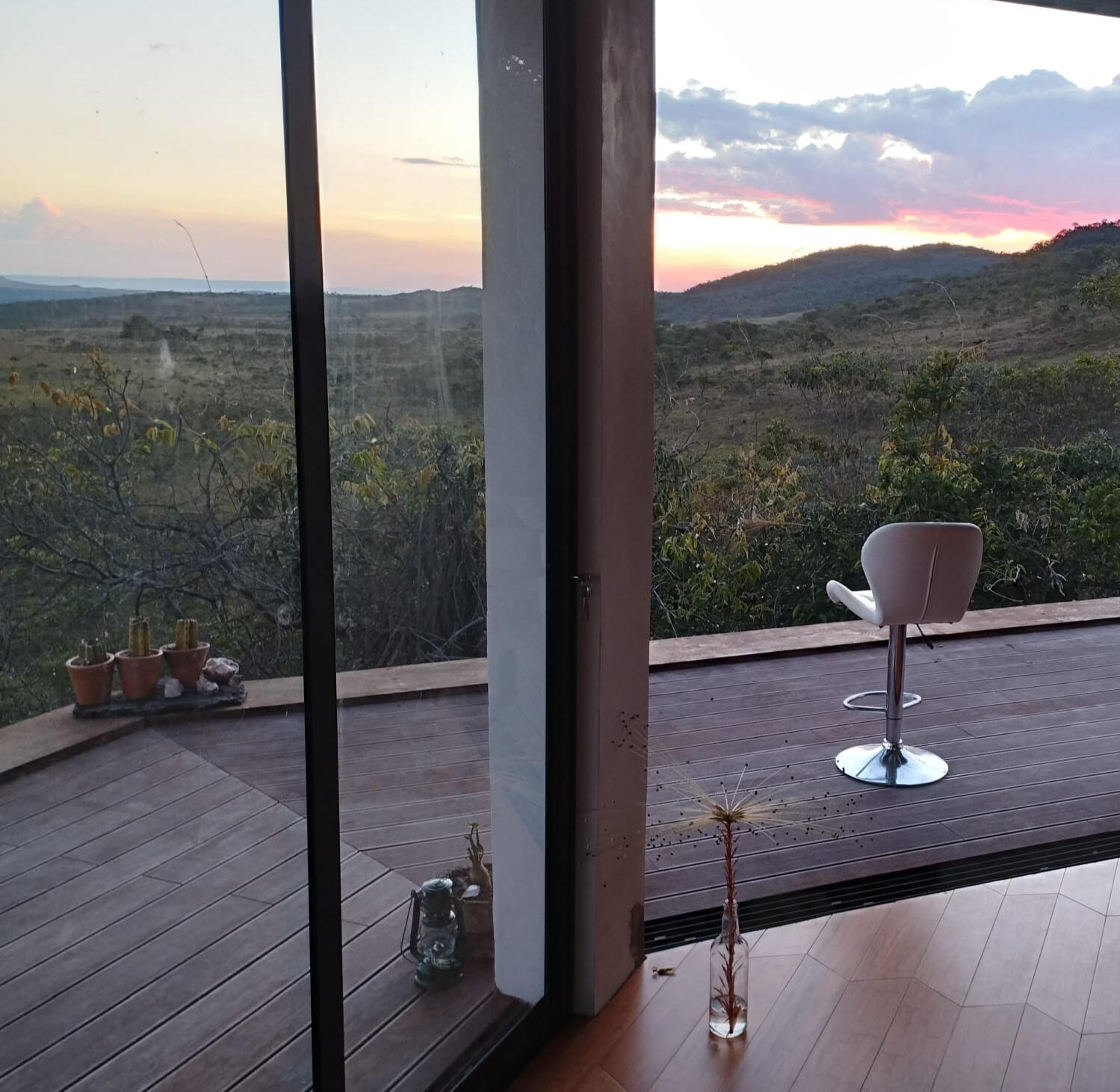 The octagonal structure features a large window front and deck. The interior features one large open room with an adjoint kitchen, sleeping area and a bathroom. Capsulo is impeded in midst of nature on the high plateau of Chapado dos Veradeiros, famous for its national park, its rich reservoirs of clear water and its soil full of crystal quartz.